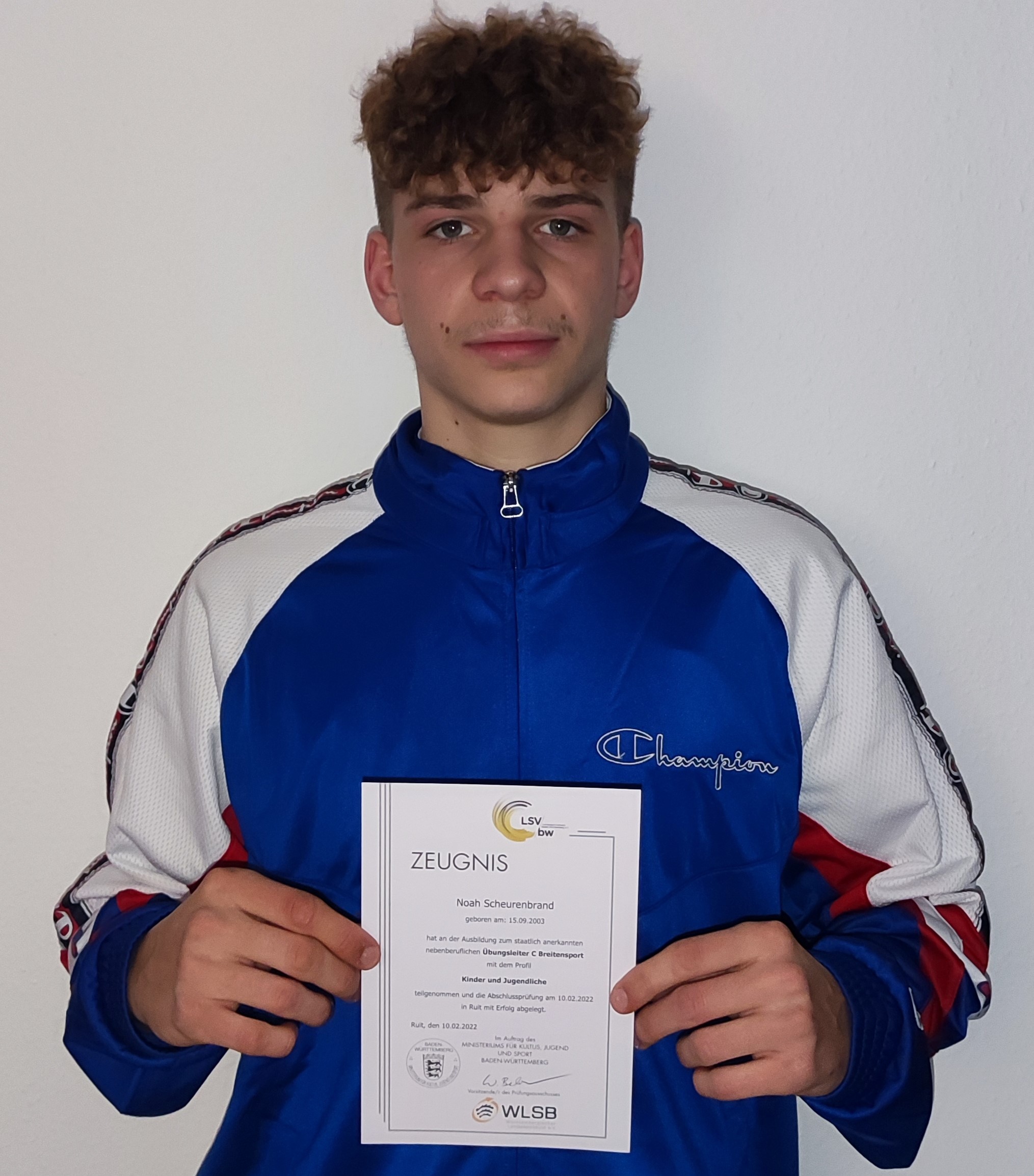 Noah Scheurenbrand hat im Rahmen seines Freiwilligen Sozialen Jahres die Prüfung zum Übungsleiter für Kinder und Jugendliche (Breitensport C) bestanden. Wir gratulieren ganz herzlich dazu. Noah ist uns in vielen Sportstunden eine wertvolle Hilfe geworden.
