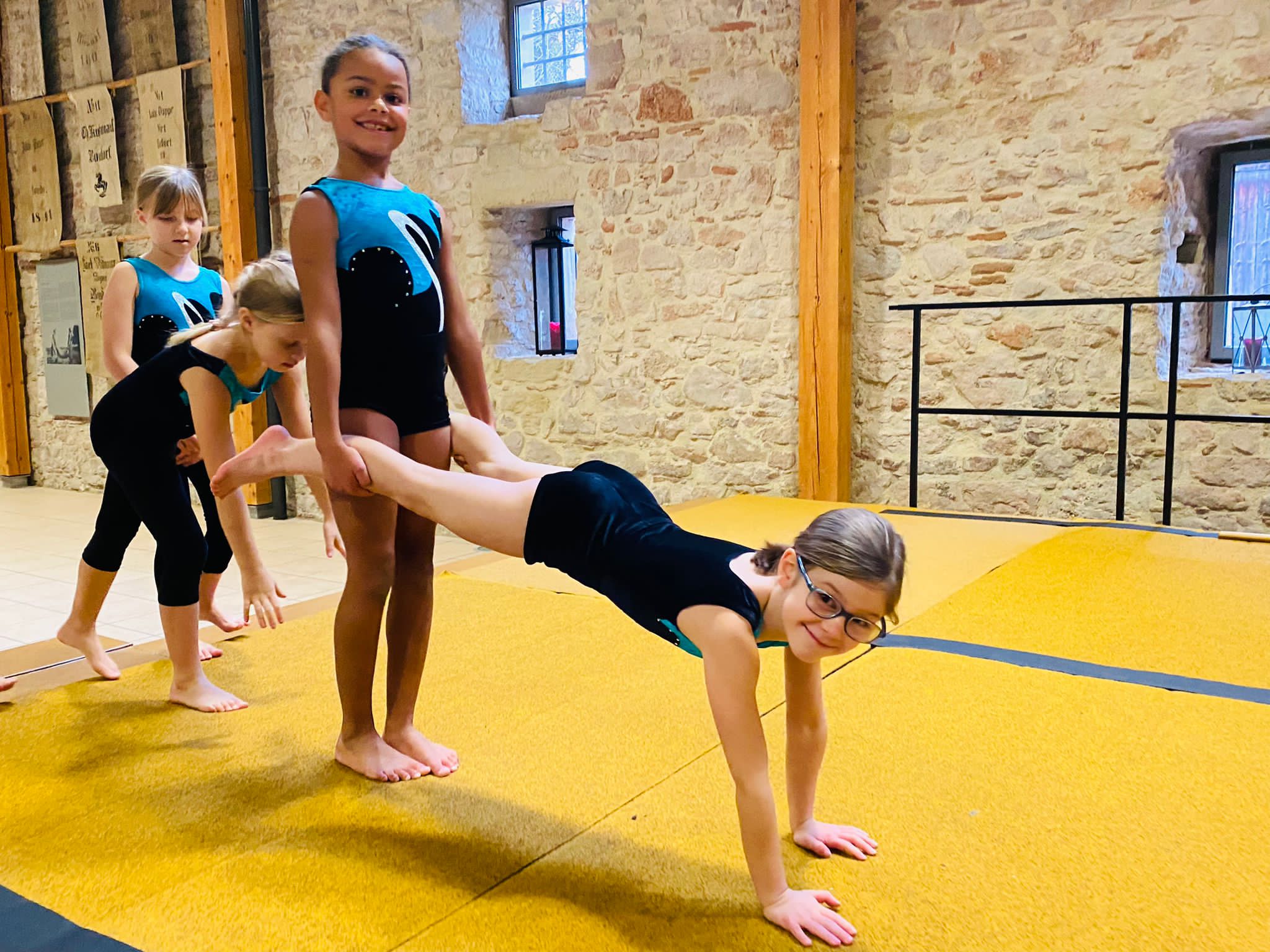 Bei Daniela Fischer haben viele Mädchen montags ganz viel Spaß beim Gerätturnen! Damit man auch an den Geräten turnen kann, baut Daniela mit ihren Turnerinnen die lange Bodenturnmatte, Sprunggeräte und mehr auf. Wären da erwachsene oder jugendliche fleißige Helfer und fleißige Helferinnen dabei, ging alles noch viel schneller.