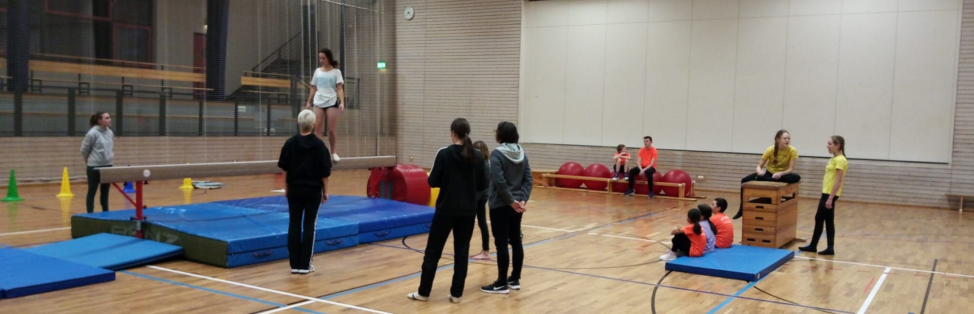 Bis zum Mittagessen wurde von den Wettkampfturnerinnen mit Unterstützung der Trainerinnen Rahel, Uta und Ursula und Noah, unserem engagierten FSJler, an allen Geräten neue Übungsteile erarbeitet und bekannte gefestigt. Es bereitete uns Trainern große Freude die Fortschritte zu sehen.
